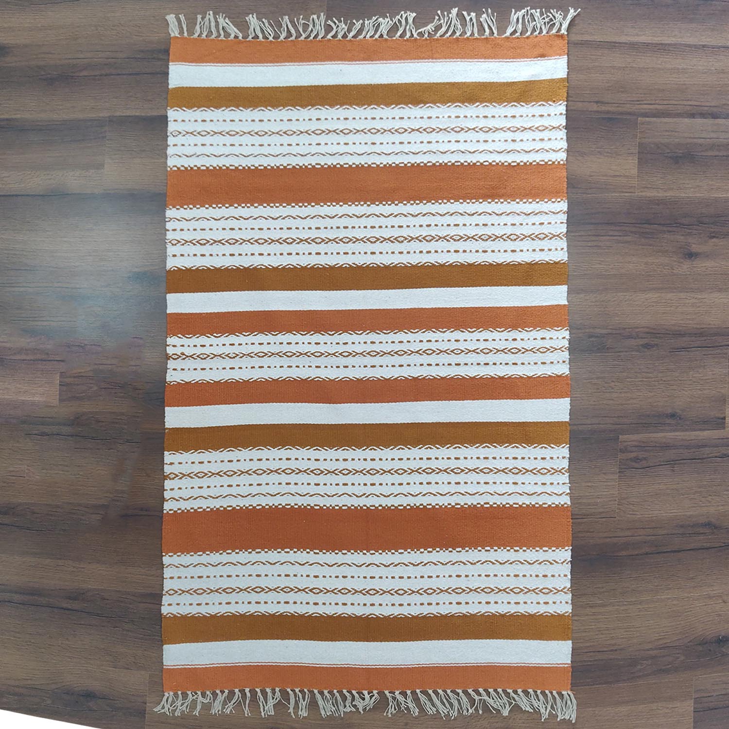 Avioni 100% Cotton Handloom Floor Rug / Durrie – Neohome Collection – Brown and White