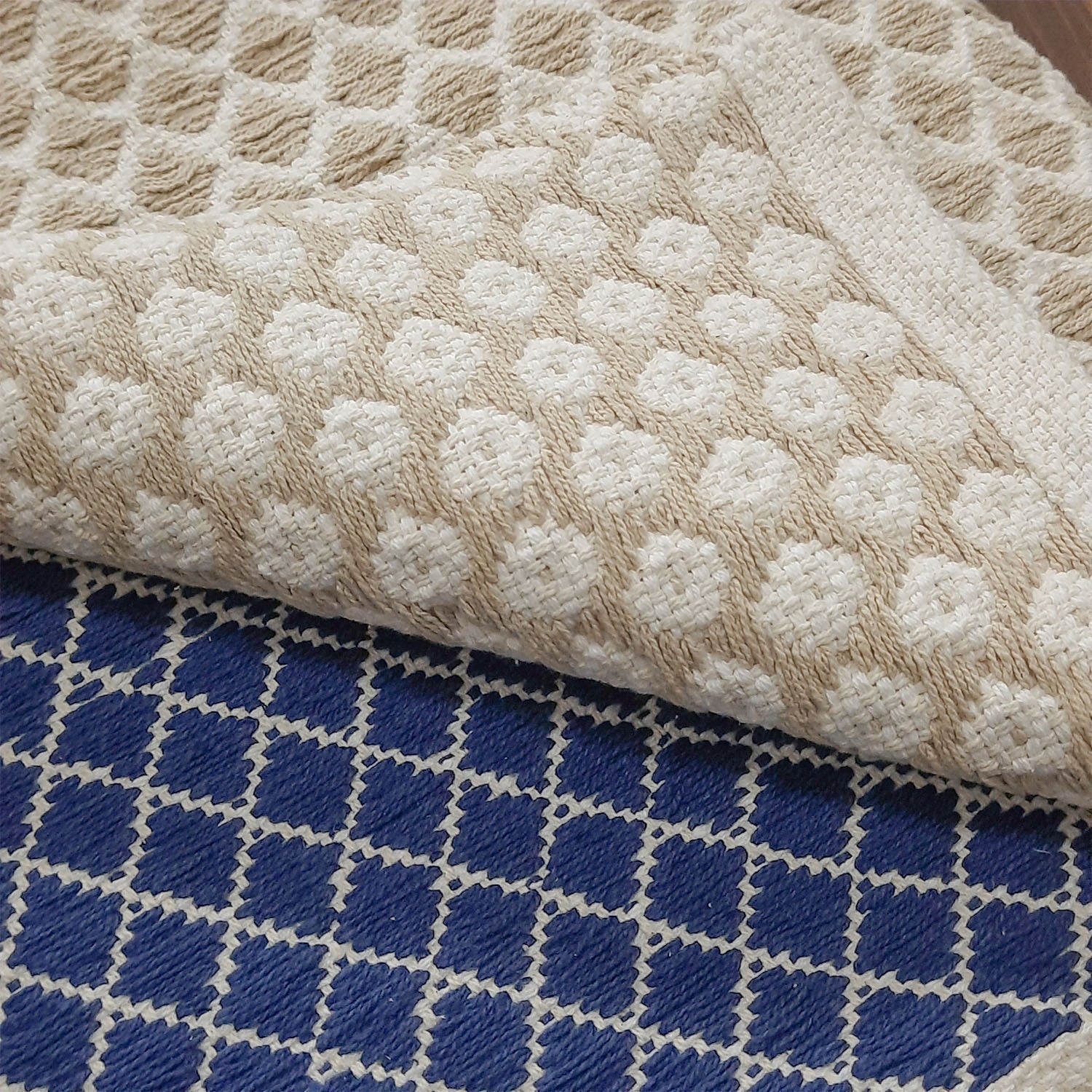 Avioni Contemporary Look Cotton Handloom weaved Floor Rug / Durrie – 90cm x 150cm (~3 feet x 5 feet) – Blue