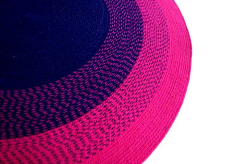 Avioni Cotton Braided Flower Look Pink And Blue Area Rug (Warm Look For Winters) 140CMS (Diameter) round, “Nature Collection”