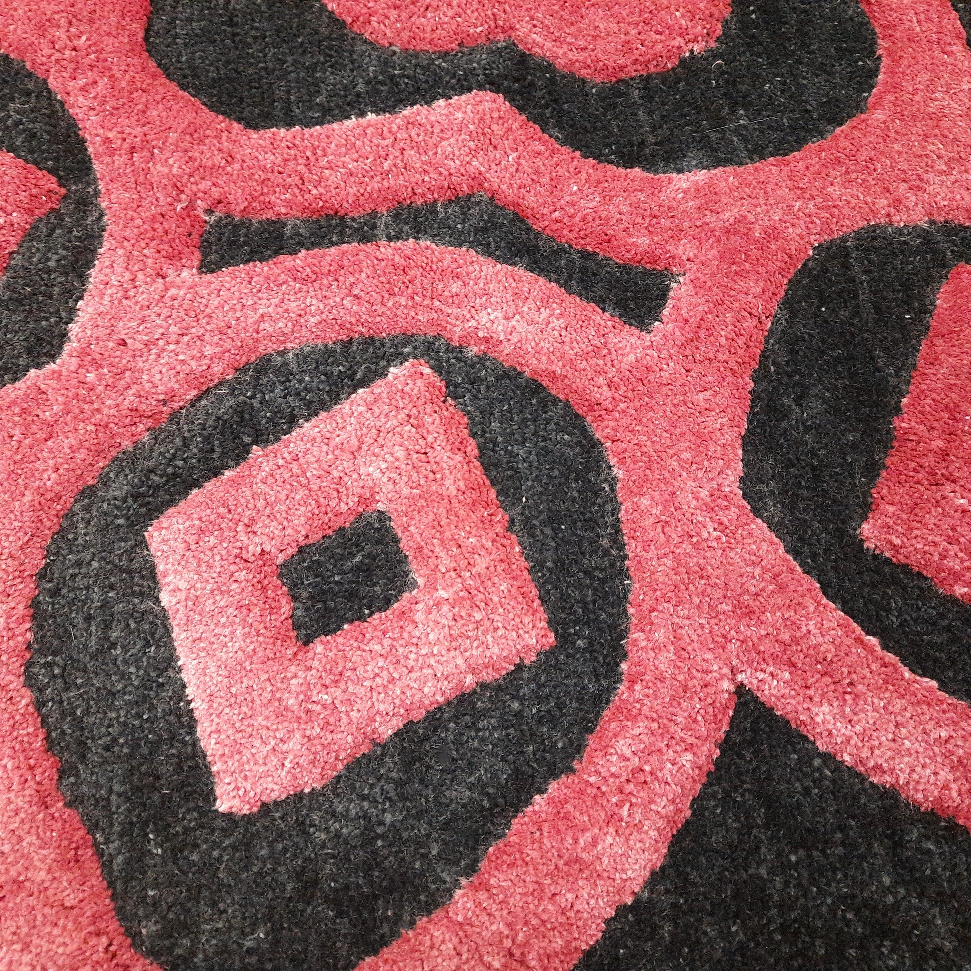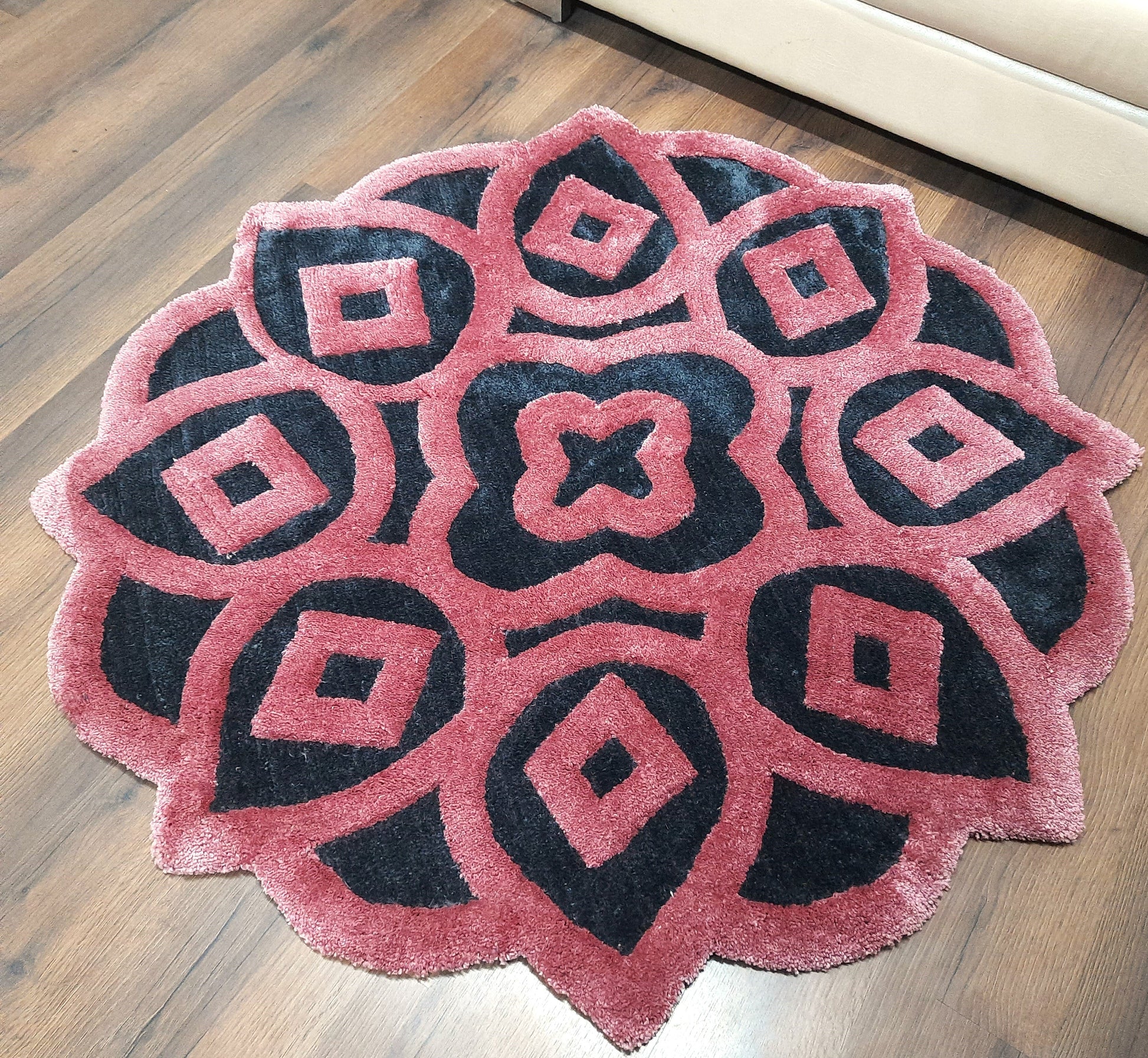 Avioni Home Rangoli Design Micro Yarn Round Carpet In Pink/Wine & Black| Soft, Non-Slip, Easy to Clean