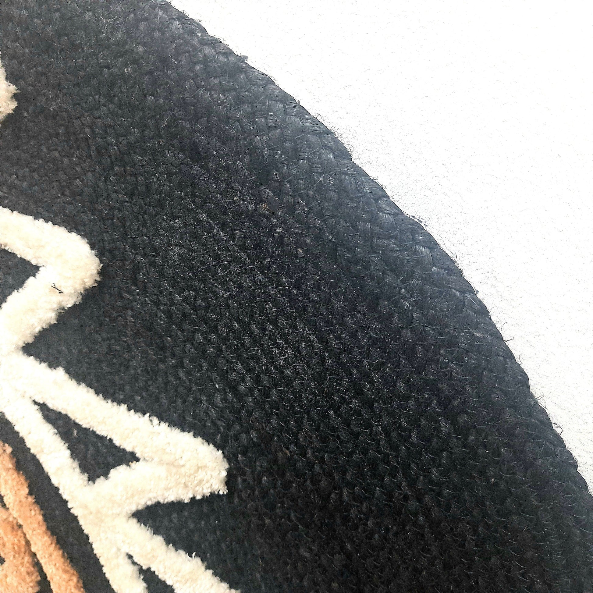 Avioni Boho Wall Decor Collection | Round Handwoven Jute with Tufted Design | Black Base with White & Beige Color Design | Large Wall Art-90 cmsx 90 cms