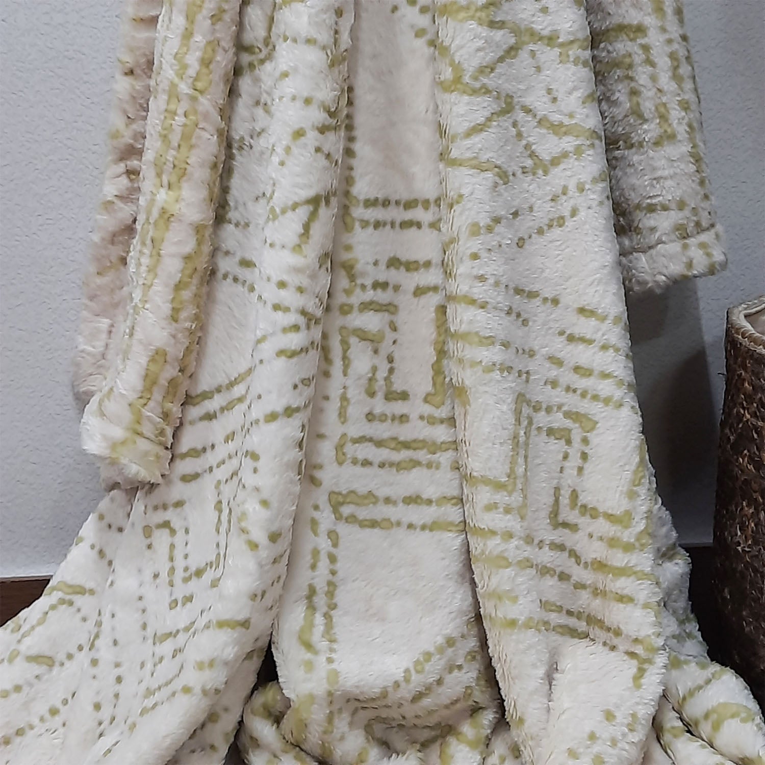 Avioni Home Everlasting Comfort Faux Fur Throw Blanket – Double Sided, Soft, Warm, Cozy, Luxury, Fluffy Blankets for Couch and Bed – Subtle Green Pattern for Sofa Large (180x145cm)| Calming Green Collection