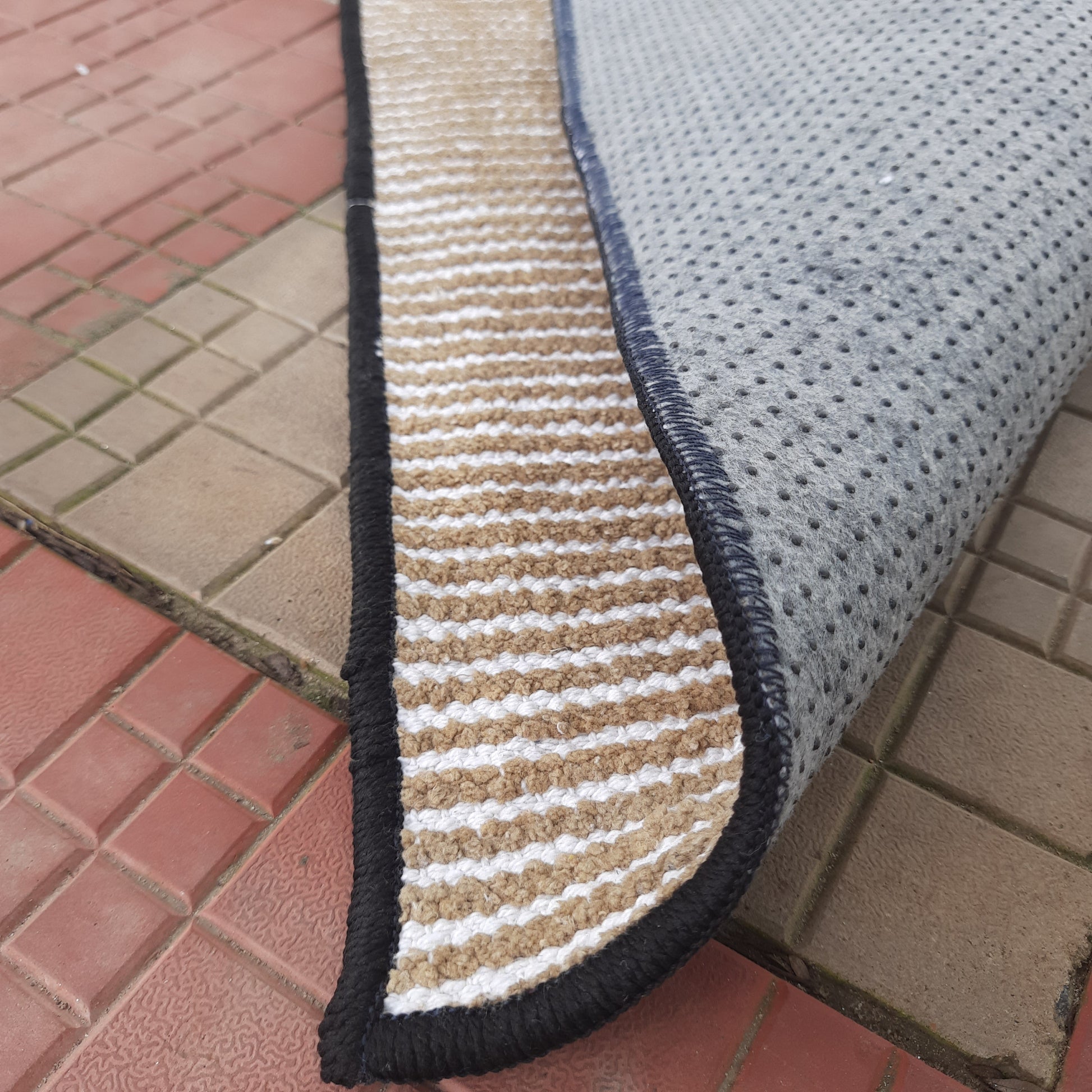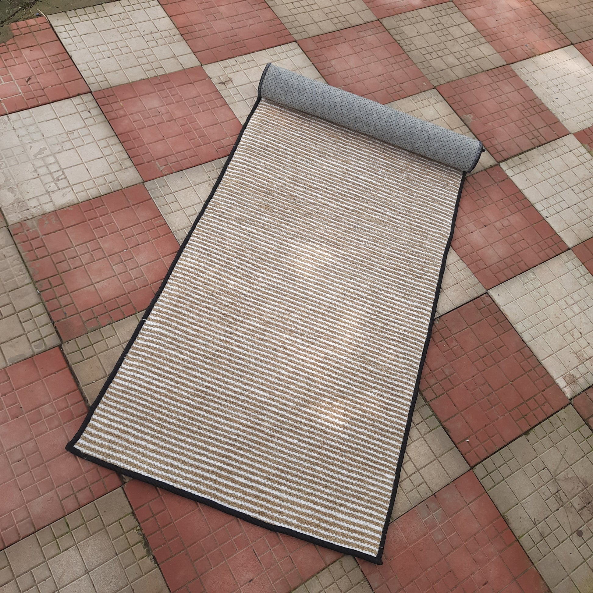 Avioni Luxury Soft Premium Chenille Stripe-Brown & White- Yoga Mat 60cm x 180cm (~2×5.5 Feet)