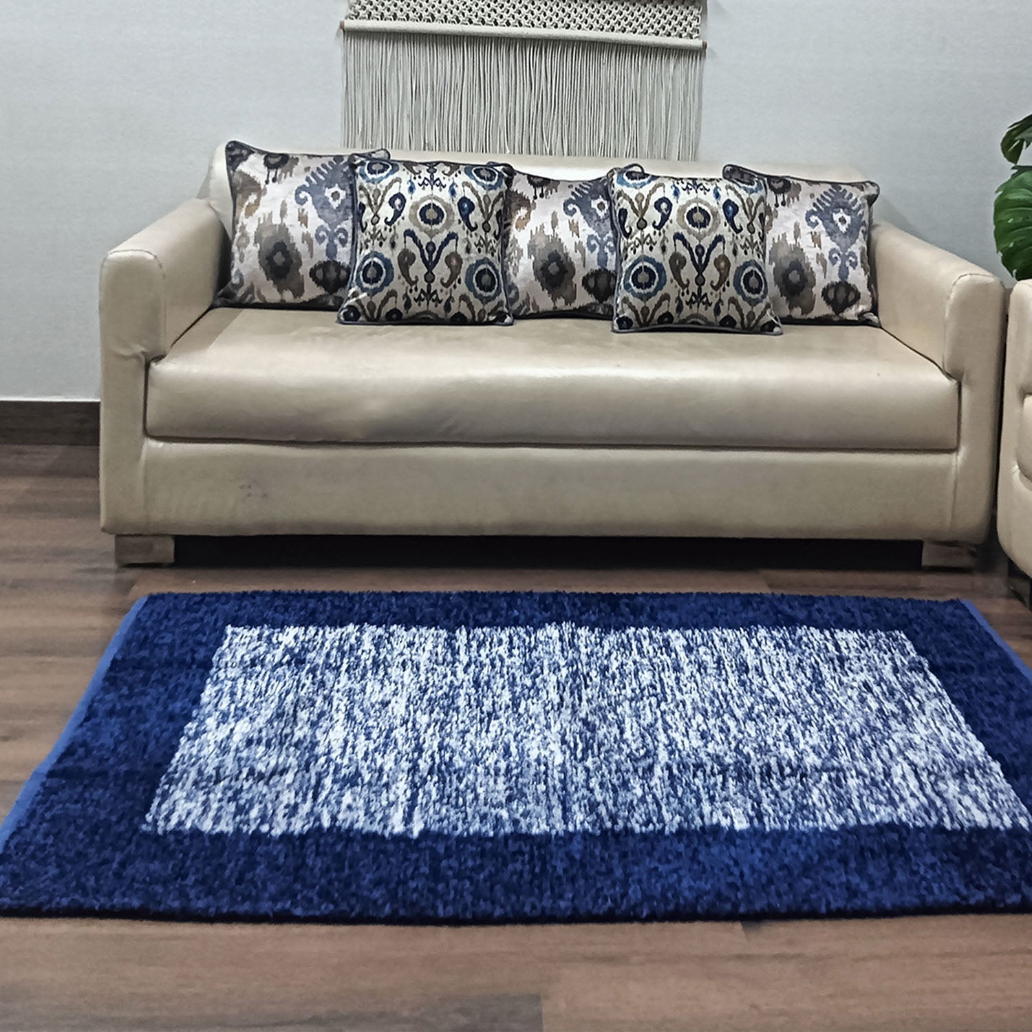 The border design in blue and white adds a touch of elegance to any living room. With these rugs, you'll have the best of both style and convenience!
