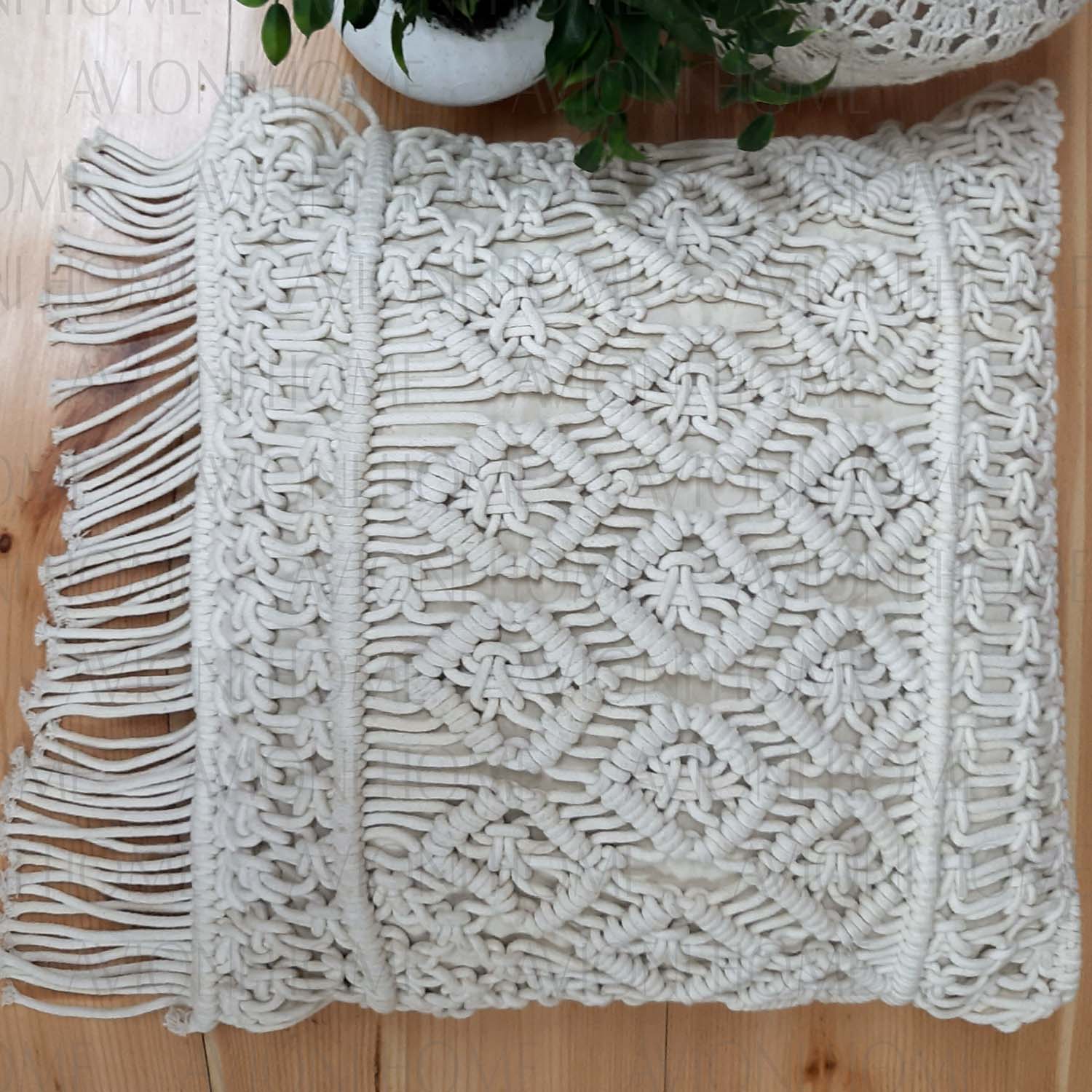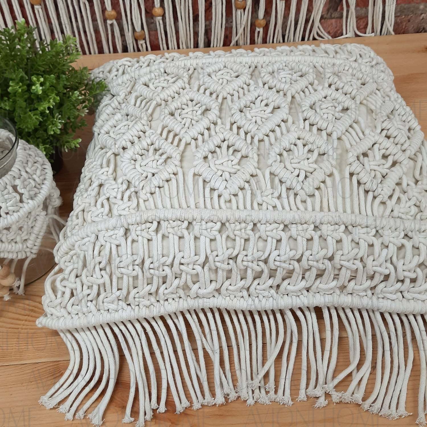Package Contains One Piece of Hand Knotted Macrame Cushion with Removable Filler