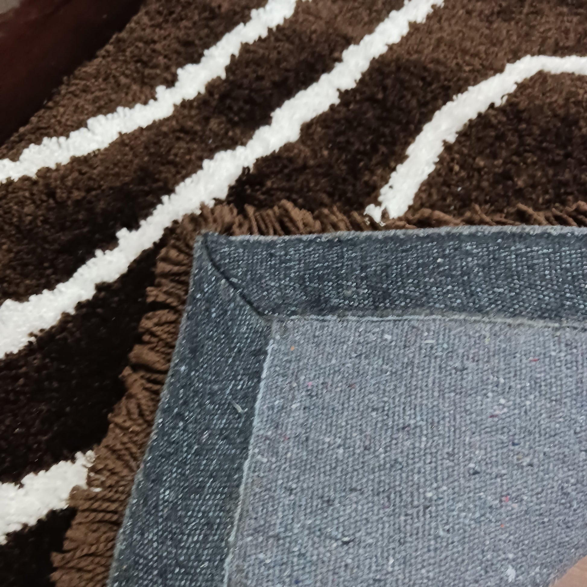 Handloom Shaggy Coffee Carpet With White Wave Design /Bedside Runners by Avioni Home