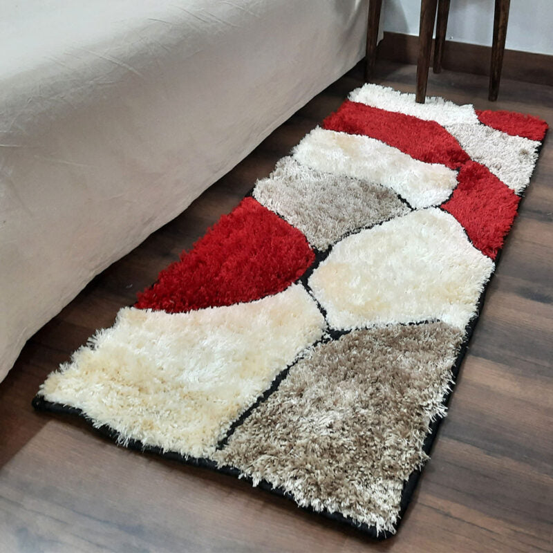 Handloom Shaggy Red Stones Premium Bedside Carpet (55cm x 137cm (~22″ x 55″)) By Avioni