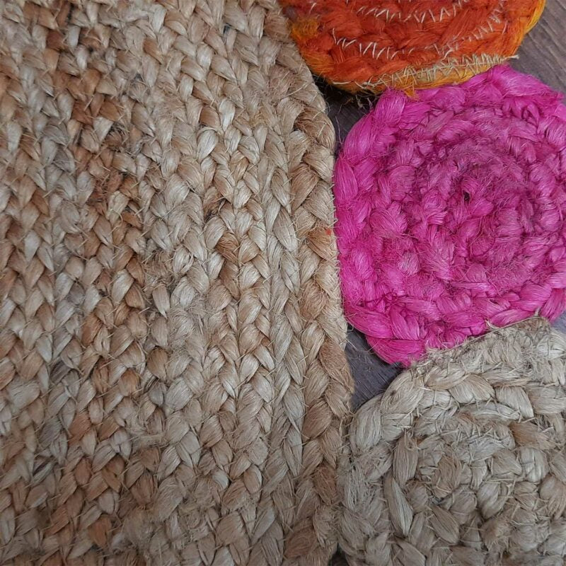 Jute Carpet – Braided Area Rugs – Circular Rug with Contemporary Colored Pattern over Natural Handmade unbleached Centre – 110 cm Diameter – Avioni