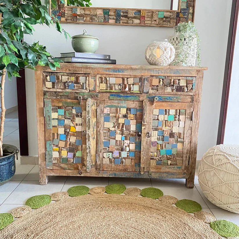 Jute Mat – Natural Rugs – Braided Area Rug – Green Border – Handmade & Unbleached – 150 cm (~5 feet) Round – Avioni Premium Eco Collection