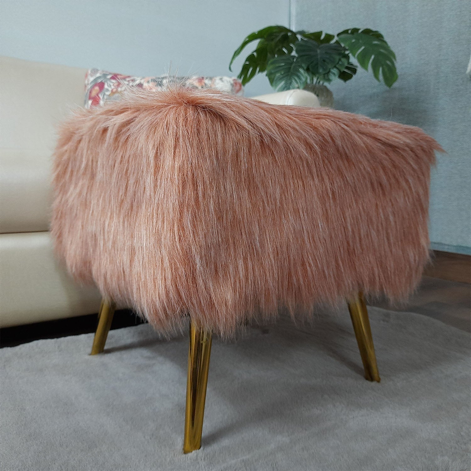 - A Noviato luxury light faux Fur stool with decorative gold metal legs