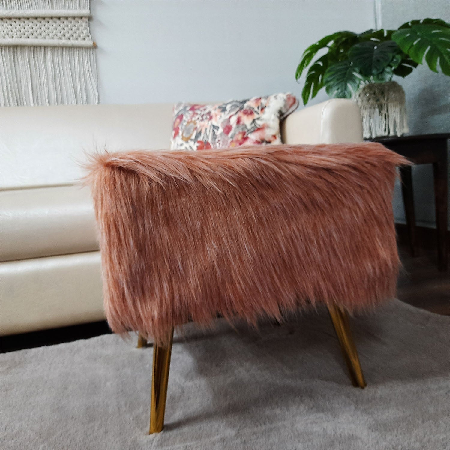 Noviato Collection – Light Redwood Premium Double Shade Faux Fur Footstool Gold Metal Legs Modern On-Trend Style Square Multi-Functional Ottoman Stool Seat, 40cm x 40cm x 40 cm | from Avioni