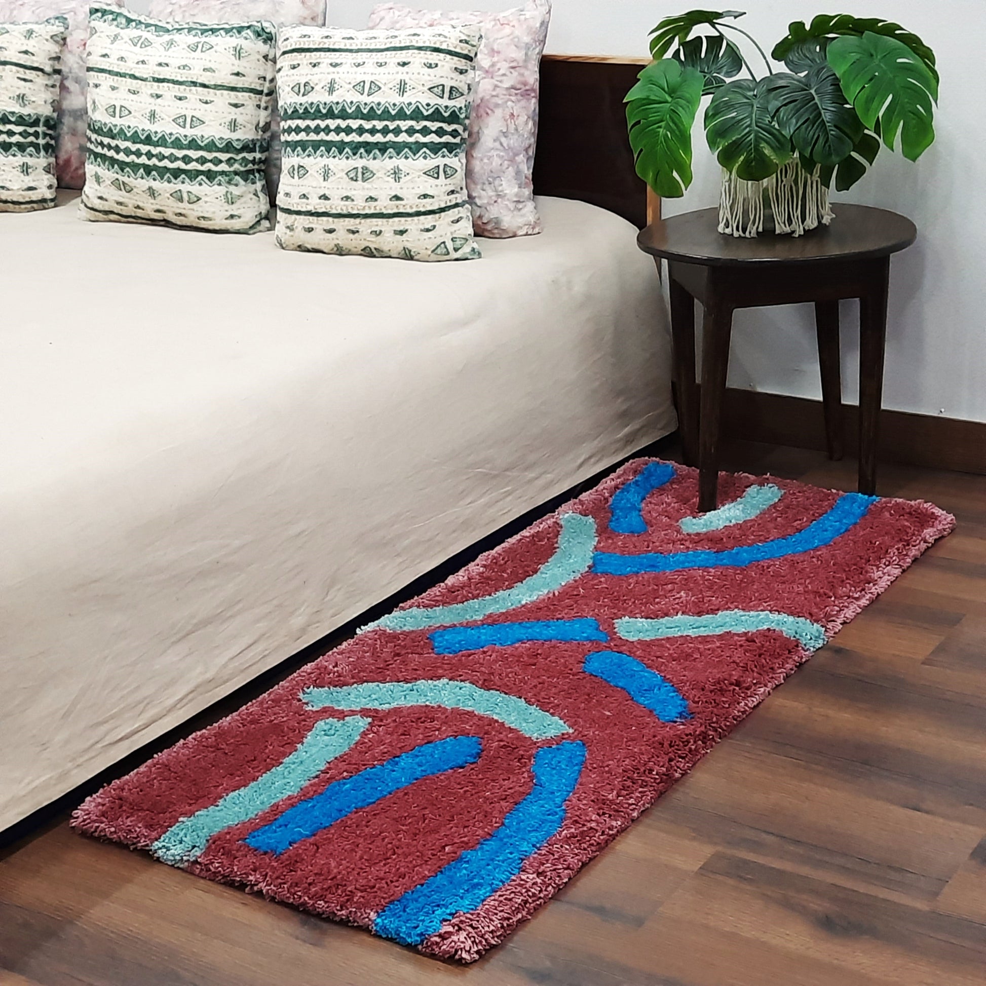 Plush Premium Shaggy Solid Pink & Multi Colour With Modern Design /Bedside Runners by Avioni Home