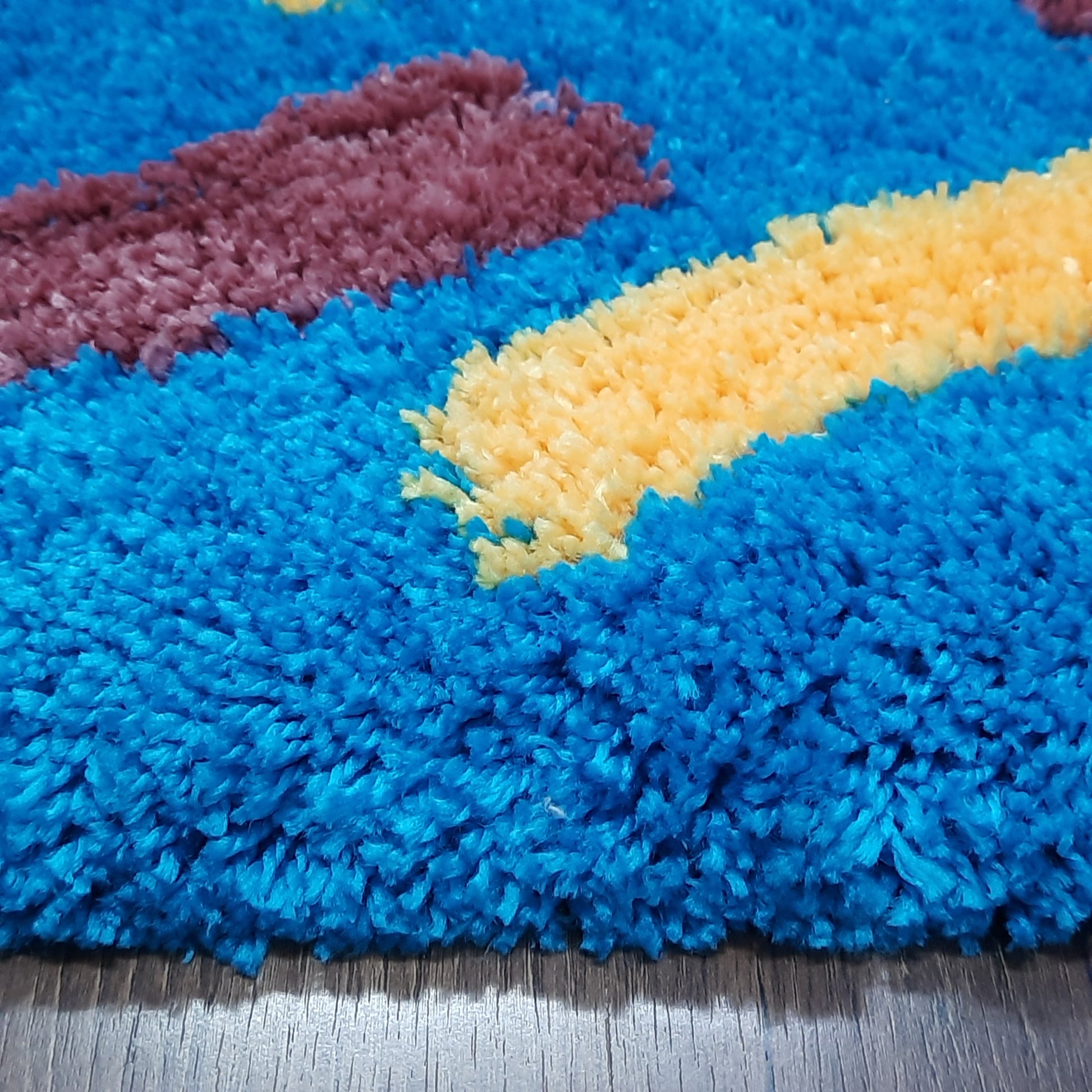 Plush Premium Shaggy Blue Base & Multi Colour With Modern Design /Bedside Runners by Avioni Home