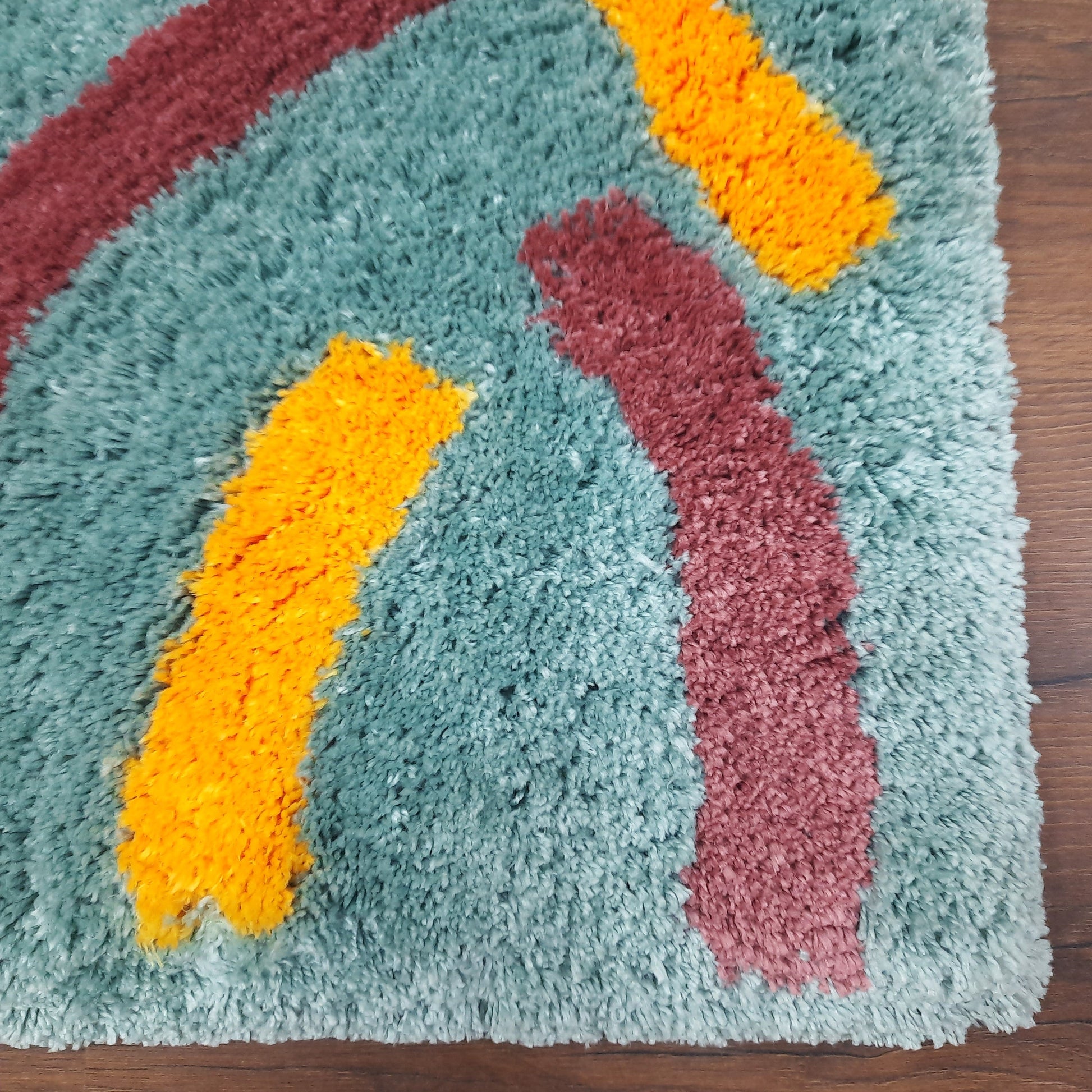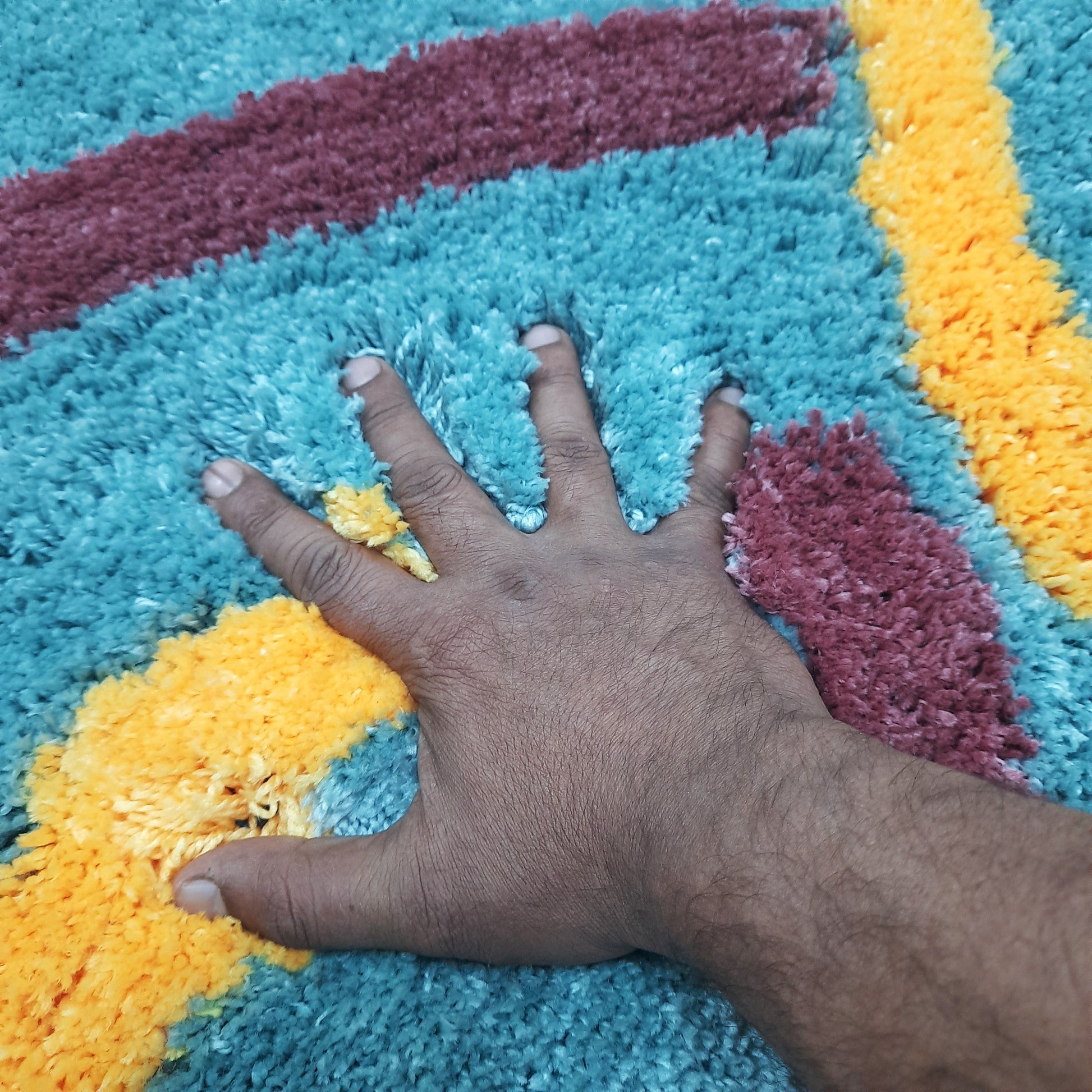 Plush Premium Shaggy Aqua Blue Base & Multi Colour With Modern Design /Bedside Runners by Avioni Home
