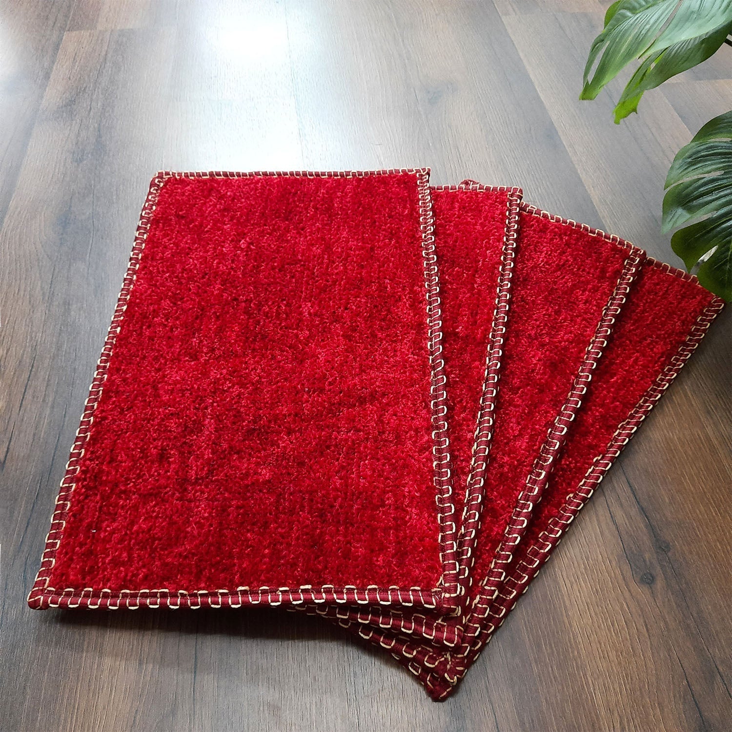SET OF FOUR | Avioni SlipToGrip Universal Doormat | Red, Size 35cm x 55cm | Anti Slip, Durable & Washable | Outdoor & Indoor