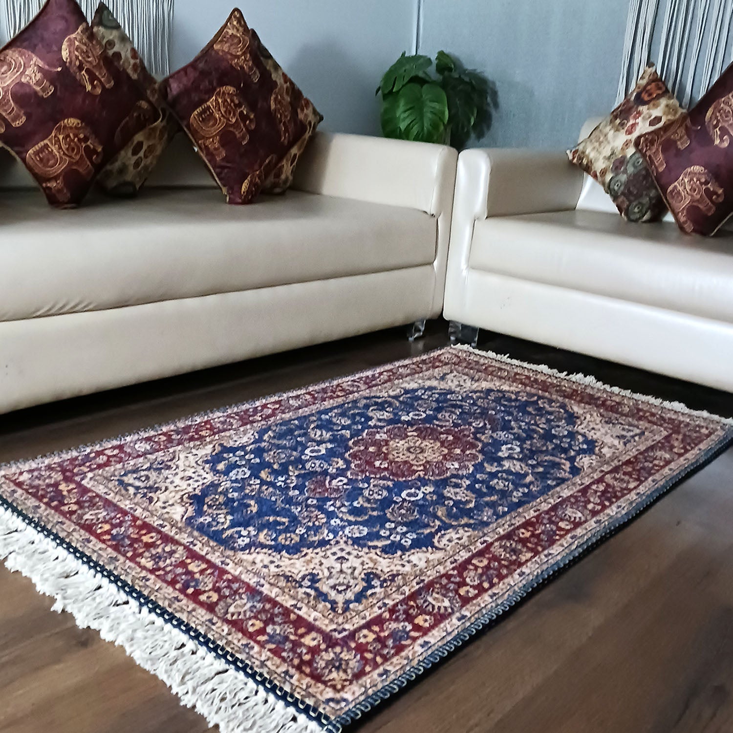 Silk Carpet Persian Design Collection Red and Blue – Living Room Rug -Avioni